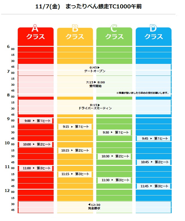 ・走りやすい!皆様のタイムを参考に、4クラス編成(1クラス9台以下)