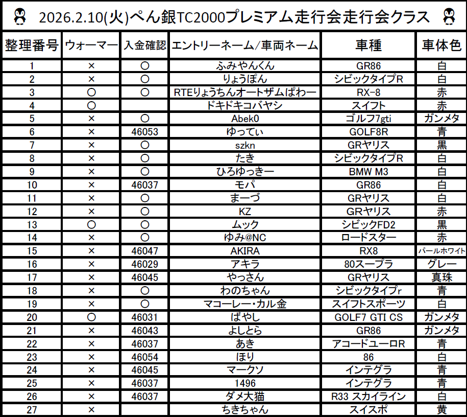 先日募集を開始した「ぺん銀TC2000プレミアム走行会(第1弾)」ですが、大変ありがたいことに募集開始直後に満員御礼となりました!