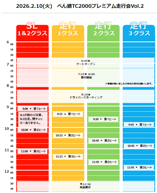 - 募集クラス: SL(スーパーラップ)クラス 24,000円 / 走行会クラス 20,500円